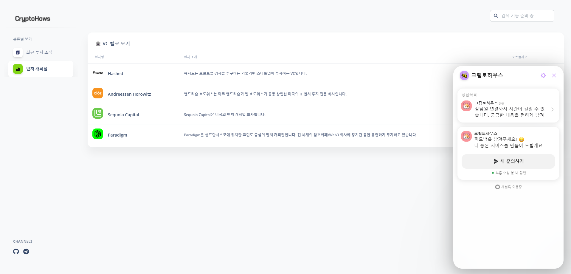크립토하우스(CryptoHows) 라는 프로덕트를 만들고 있어요.