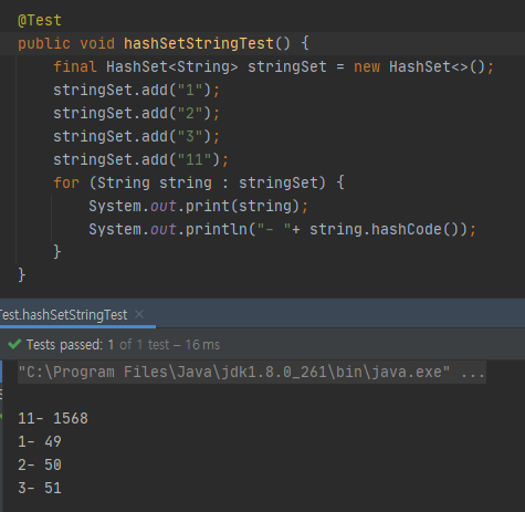 해당 예시에서는 가장 hashCode가 큰 "11"이 가장 먼저 출력되는 것을 볼 수 있었어요.