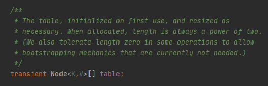 즉 16개의 Node<K, V>가 들어갈 수 있는 배열이 선언이 된 것이죠.