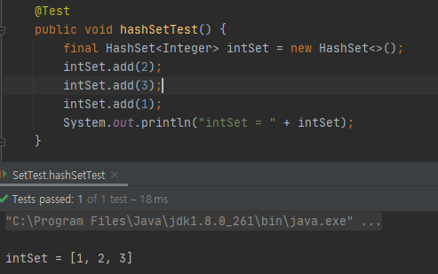 intSet을 출력해보면 매번 [1, 2, 3] 이 나오는 것을 알 수 있었어요.